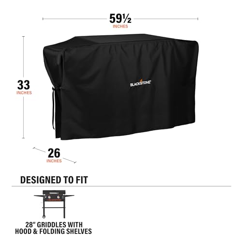 Blackstone 5483 Griddle Cover Fits 28 inches Griddle Cooking Station with Hood Water Resistant, Weather Resistant, Heavy Duty 600D Polyester Flat Top Gas Grill Cover with Cinch Straps 28″ Black