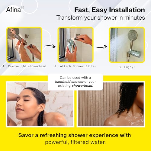 Specification: Afina Shower Filter | Works with Handheld & Fixed Showerhead | Hard Water Filter for Shower Head, Reduces Hairfall, Dandruff & Dry Skin | Showerhead Filter | Shower Filter Head for Hard Water (Black)